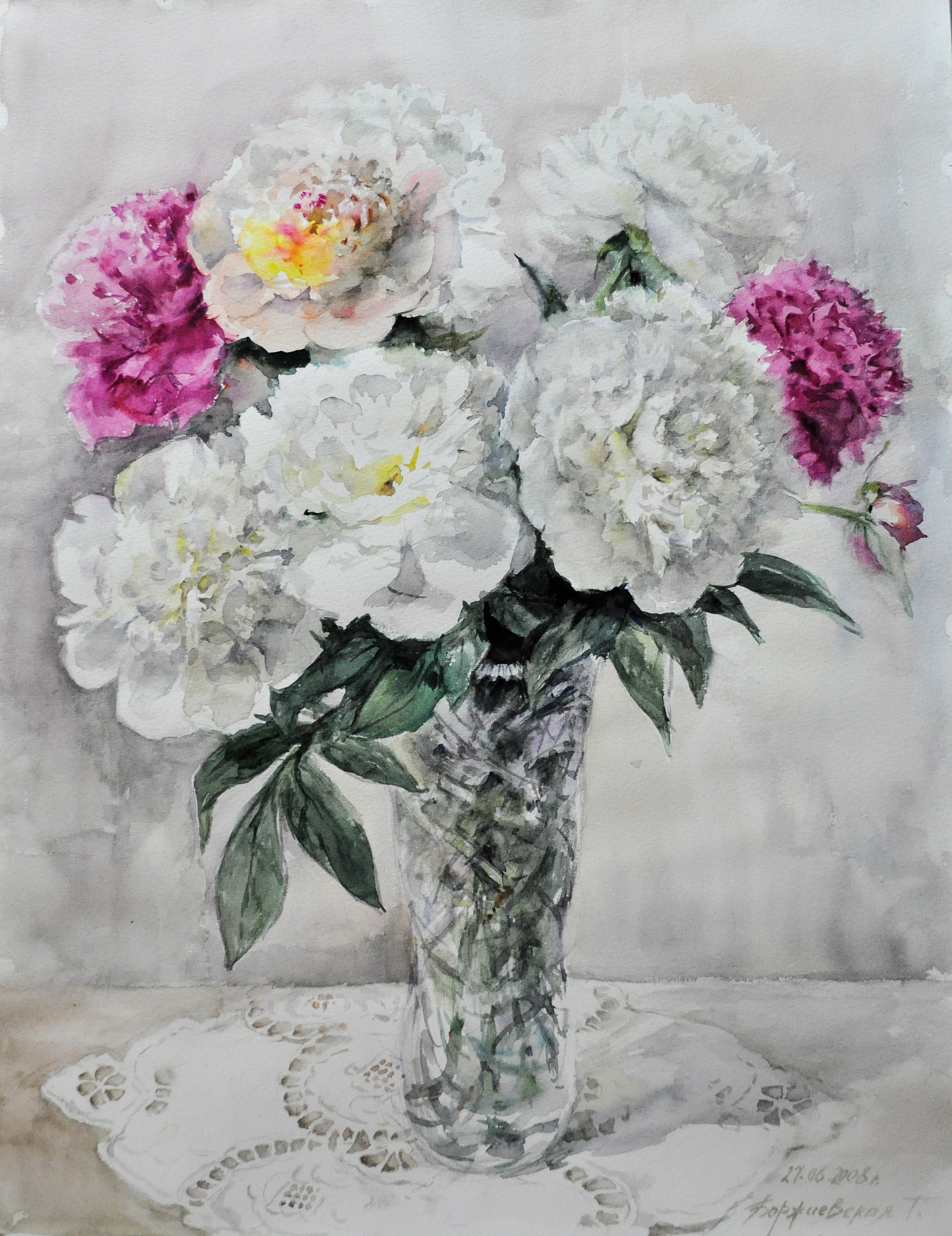Пионы в хрустальной вазе